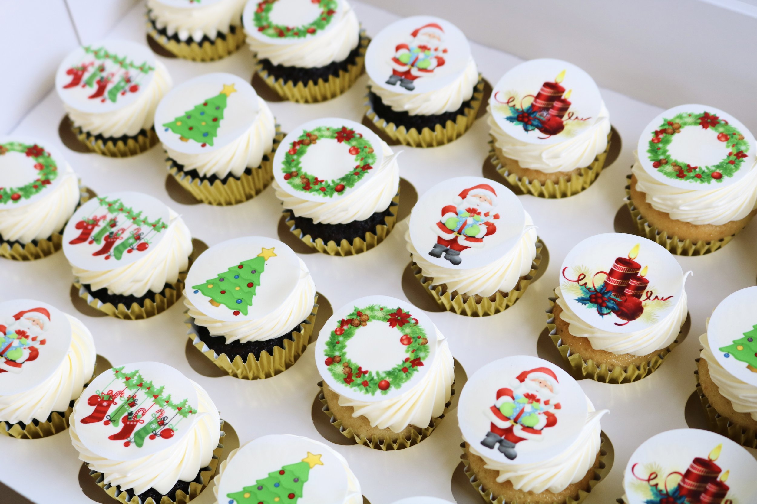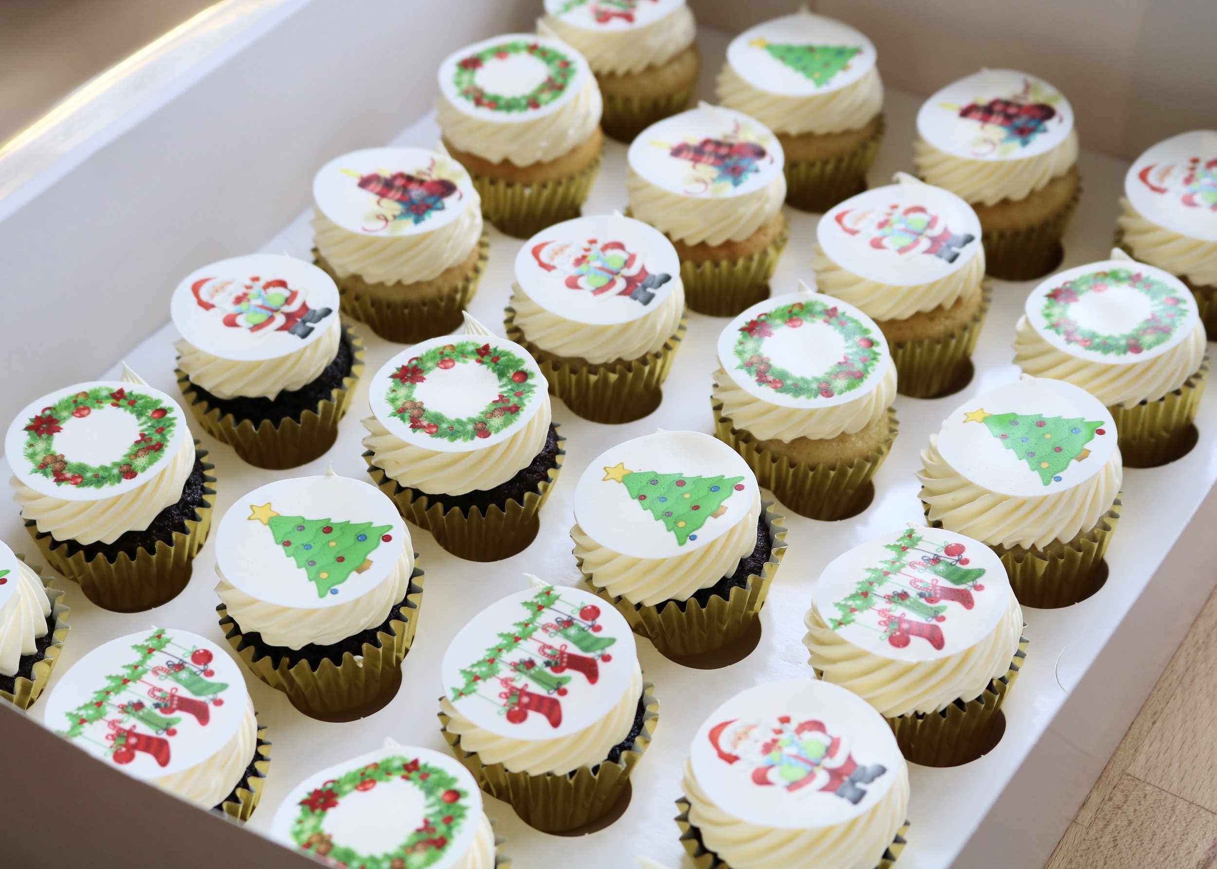 Adorable mini cupcakes topped with edible Christmas logo decorations – perfect for festive gatherings, corporate events, and thoughtful gifts. Minimum quantity: Box of 48 mini cupcakes.