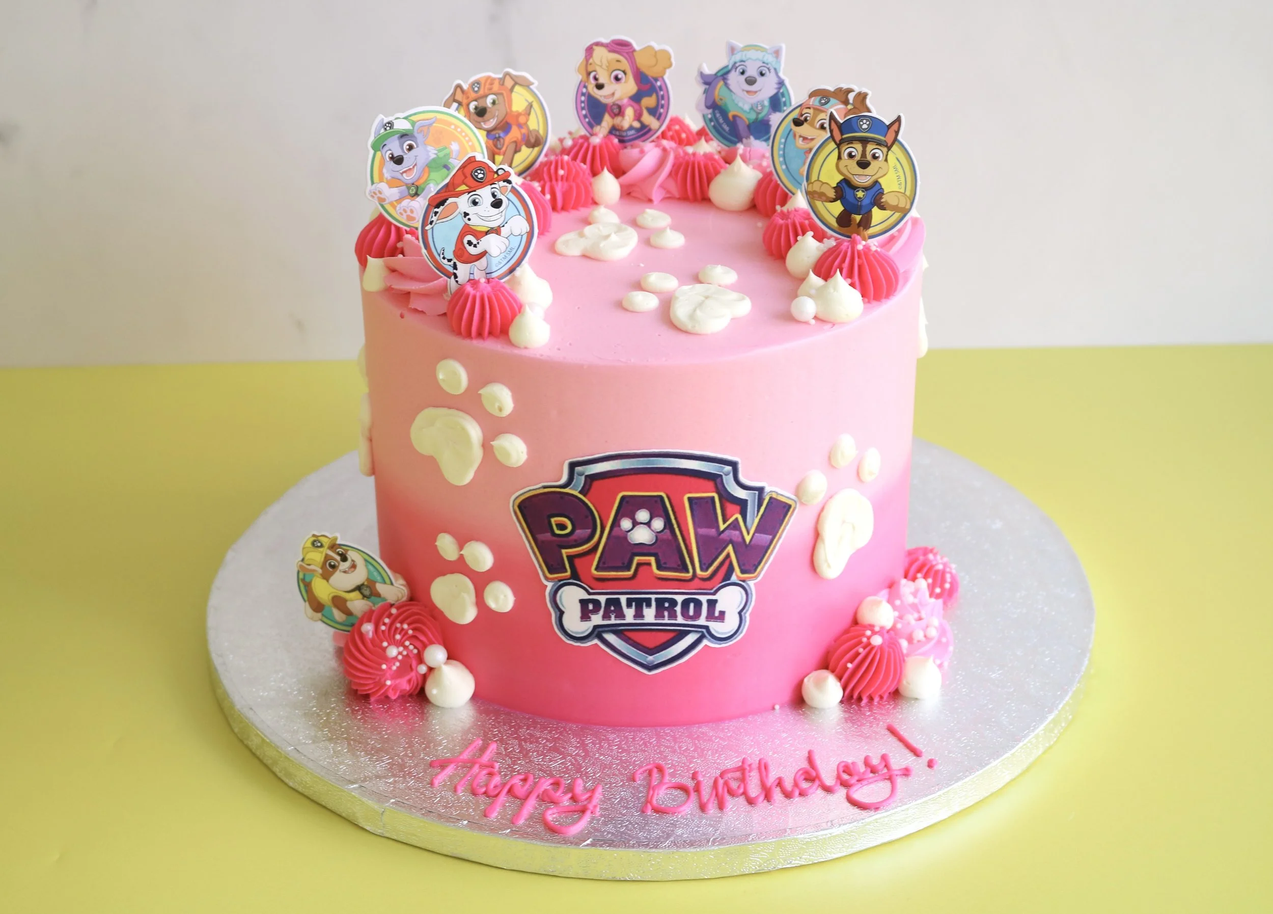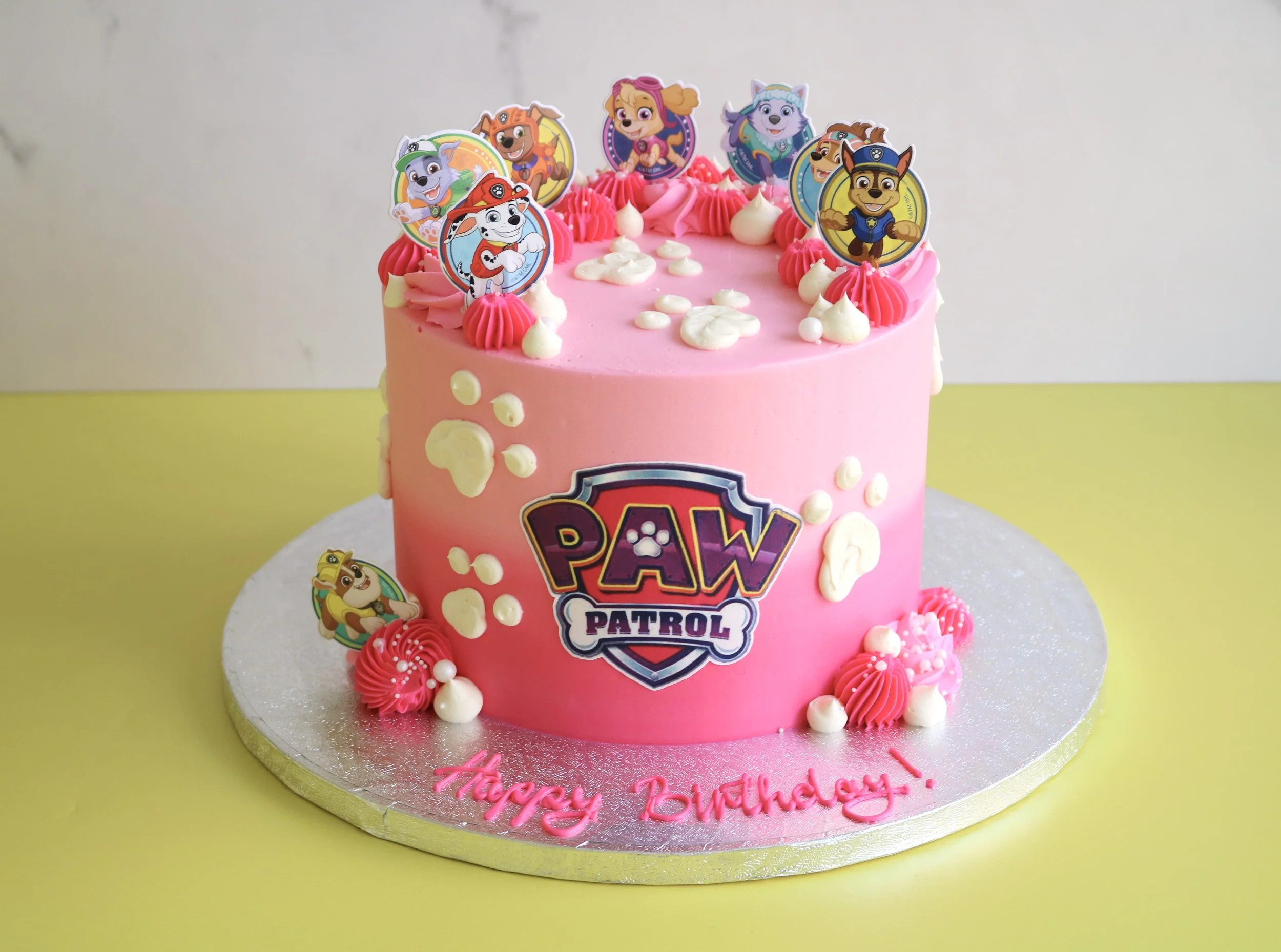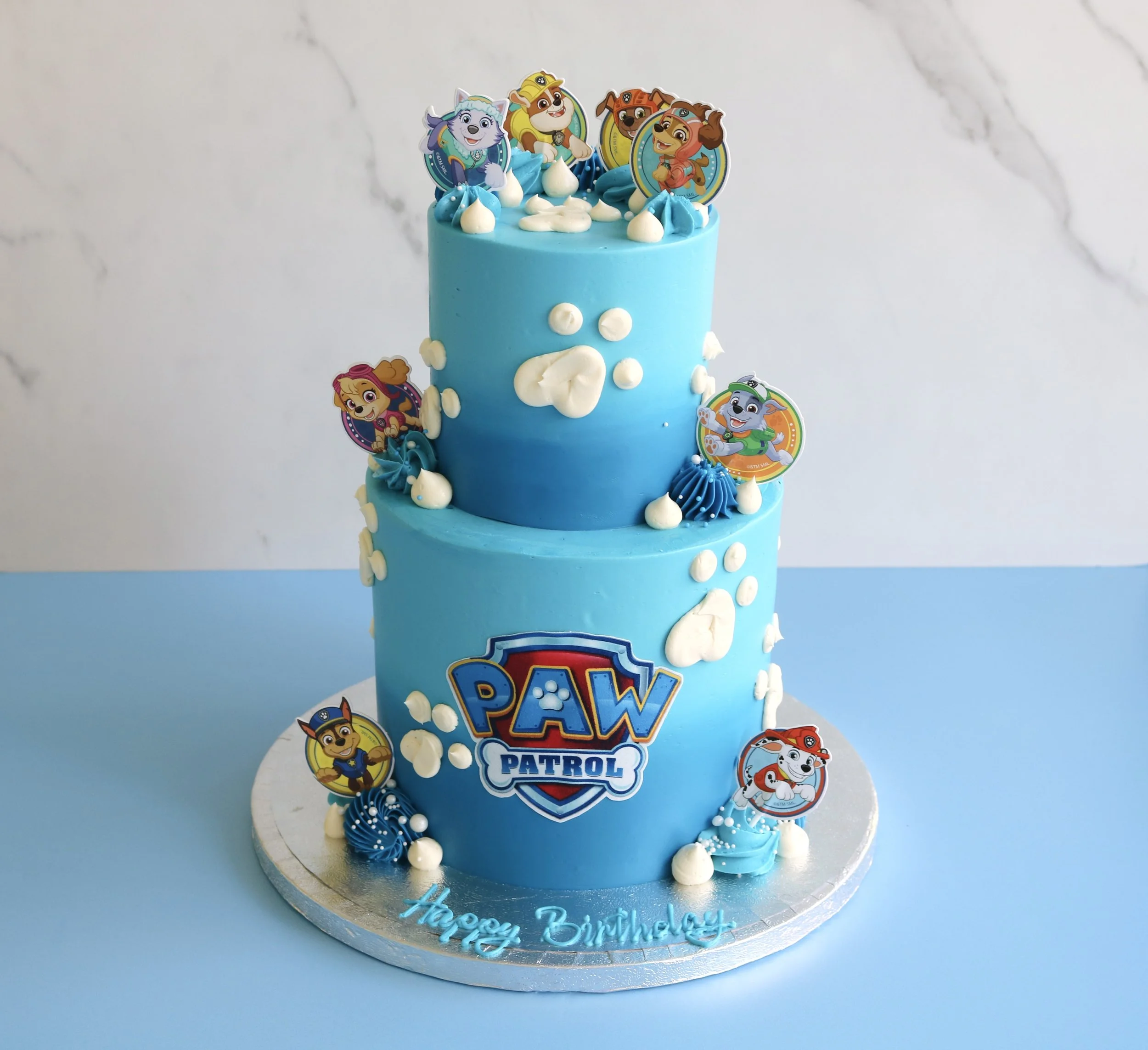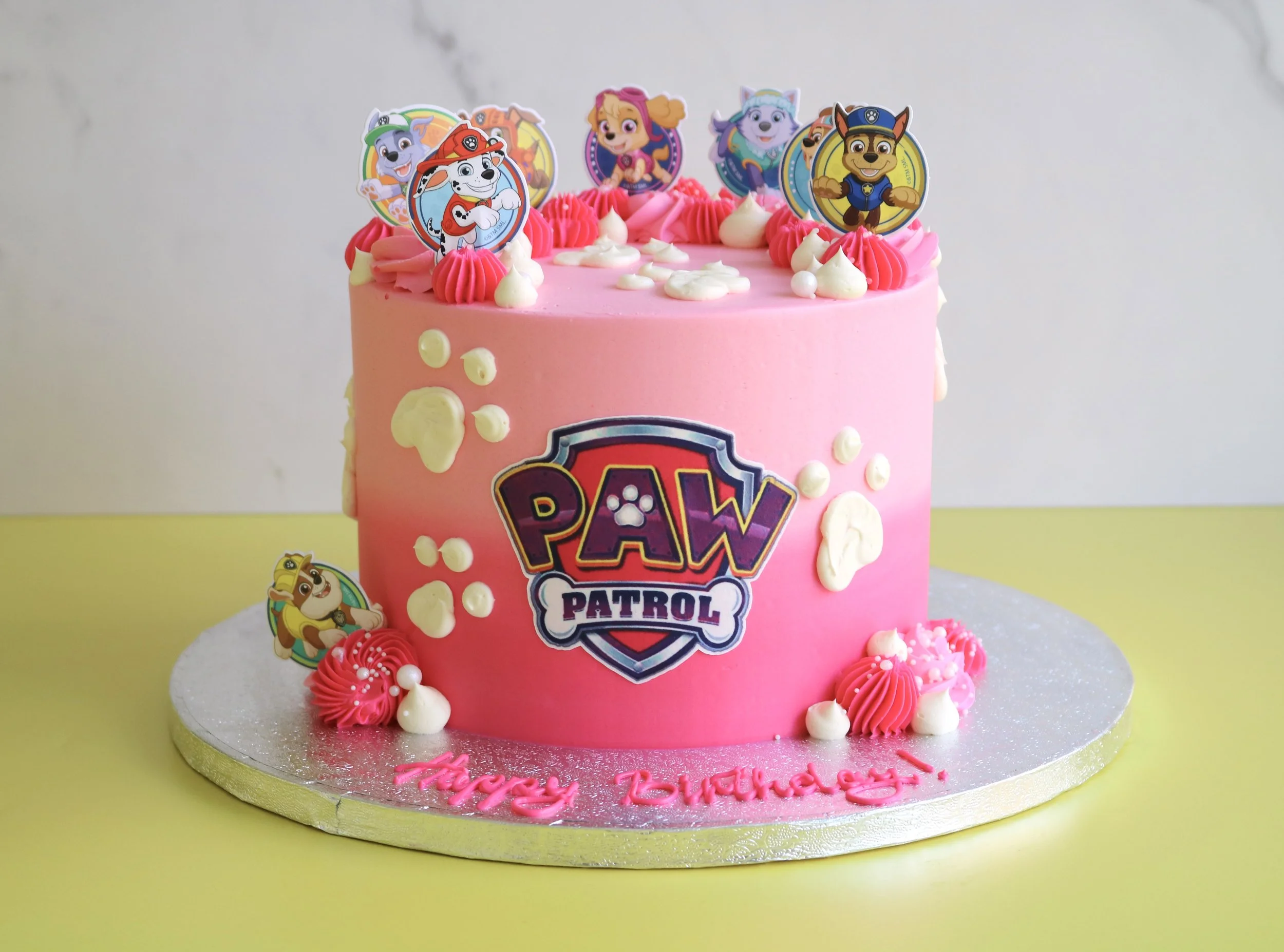 A fun, delicious centrepiece for any Paw Patrol celebration, this design is available in two-tier sizes.