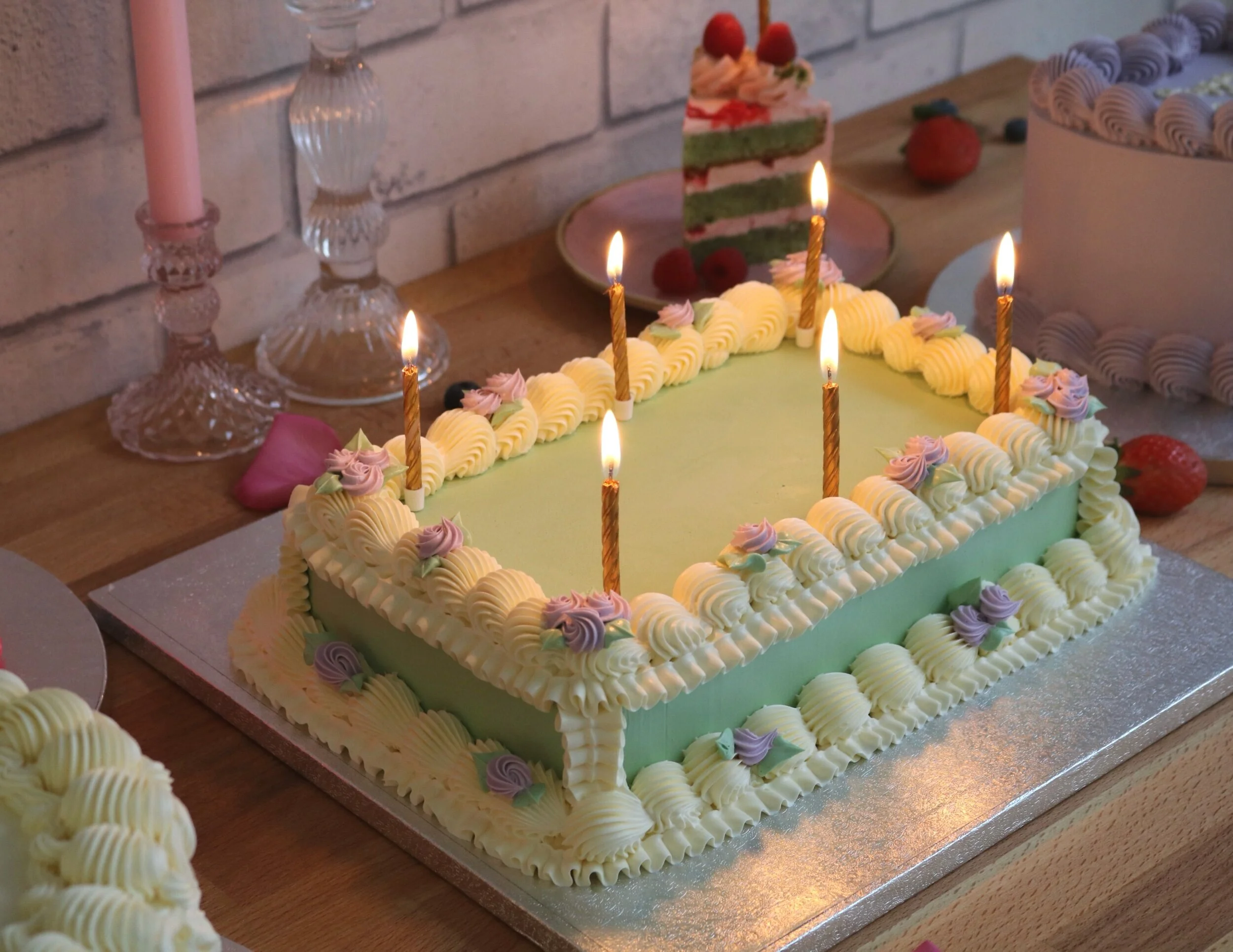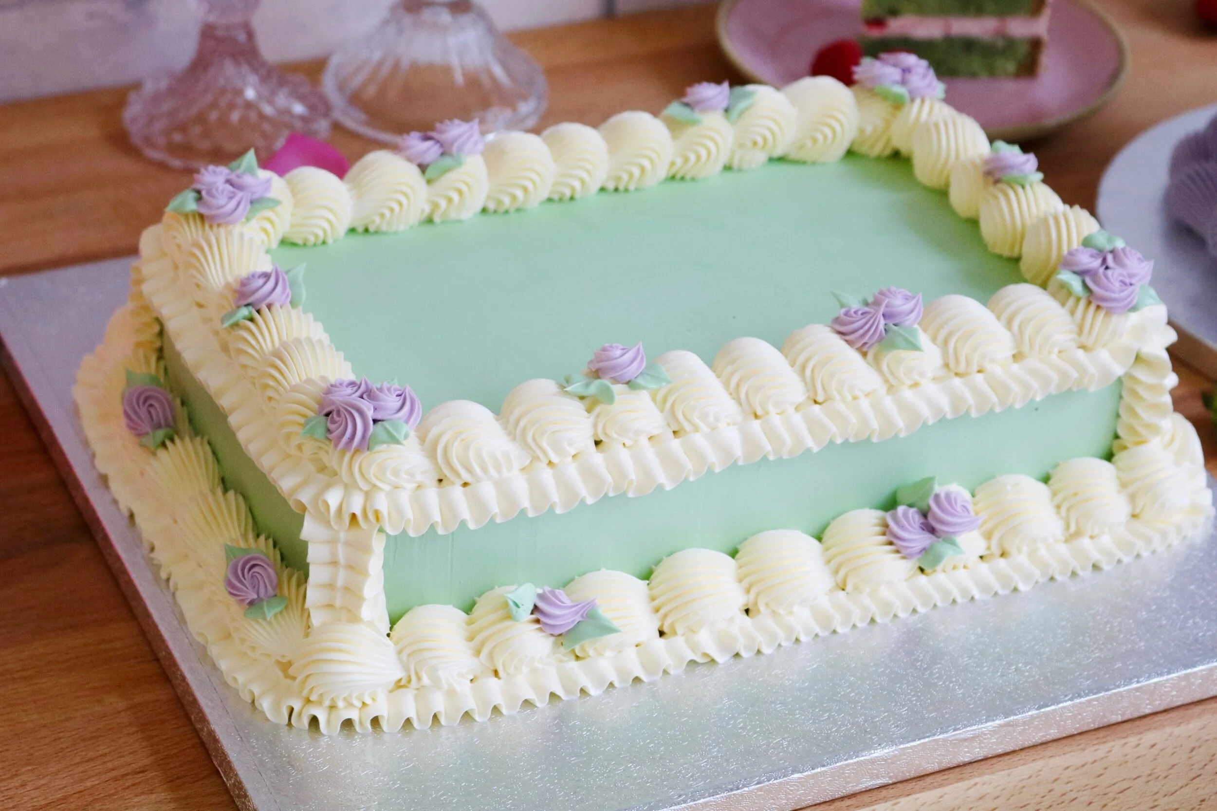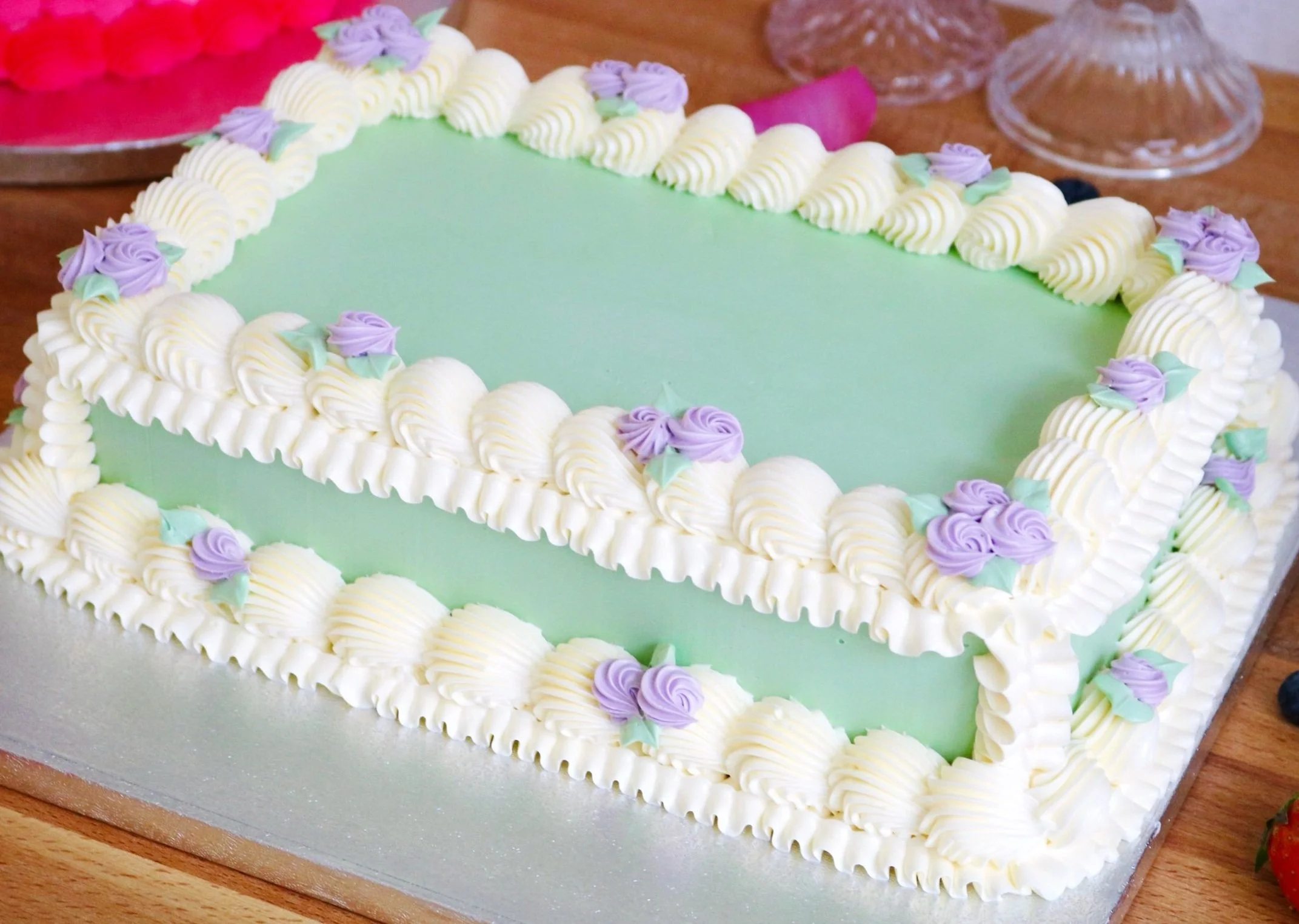 Introducing The Dainty Skirt Cake – all cream version! This vintage-style heart cake is covered in smooth cream icing, decorated with various delicate ruffle piping, and dotted with edible pearls. Cute red maraschino cherries are added for a pop of colour . With its frilly-dress look, this cake is a timeless centrepiece for any event.