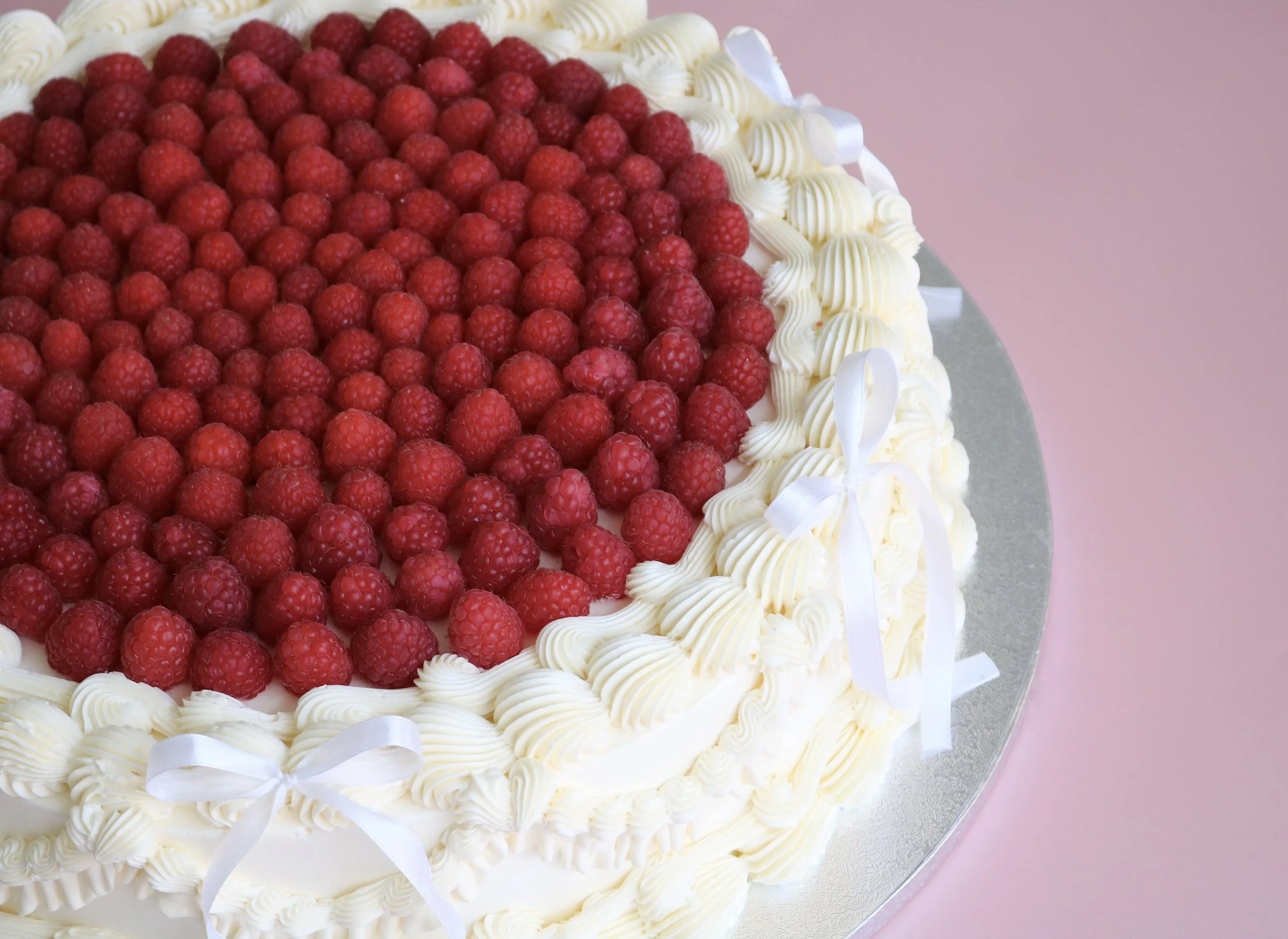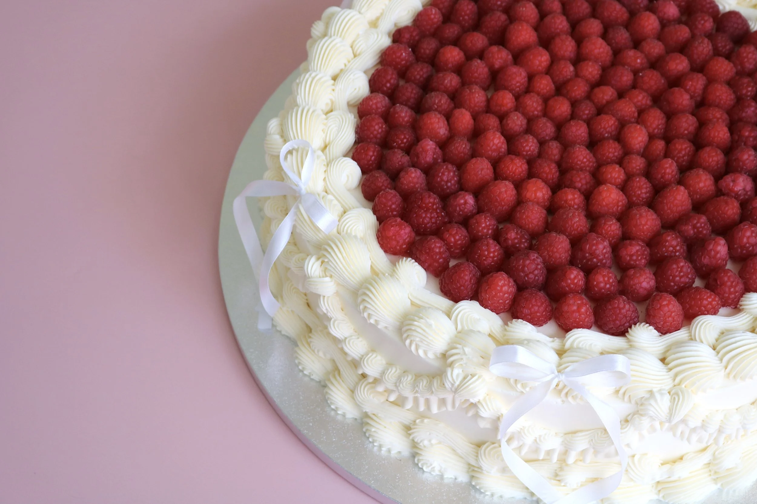 Meet Valentina, our show-stopping Wedding Cake - a timeless, Lambeth design in a classic all-cream palette, decorated with a generous layer of fresh berries of you choice over the top. The sides are finished with delicate, hand-piped vintage patterns for a romantic, couture look, while soft satin ribbons add a soft, bridal finish. Elegant, refined, and unmistakably celebratory, it is a beautiful centrepiece for any wedding reception.